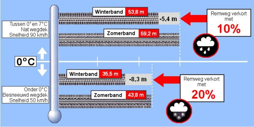 Winterbanden hebben een profiel en (rubber)samenstelling speciaal ontworpen voor het rijden bij natte en winterse weersomstandigheden. Winterbanden geven een sterk verbeterde grip, een kortere remweg en daardoor minder kans op ongelukken. Tussen oktober en maart is het verstandig om op winterbanden te rijden.